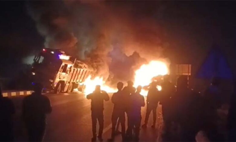 जानकारी के मुताबिक, हादसे के दौरान जिप्शम से भरे ट्रक का टायर फटने के कारण ड्राइवर और खलासी वाहन से नीचे उतरे हुए थे, तभी पीछे से आ रहे ट्रेलर ने ट्रक को जोरदार टक्कर मार दी. टक्कर इतनी जबरदस्त थी कि दोनों वाहनों में तुरंत आग लग गई.