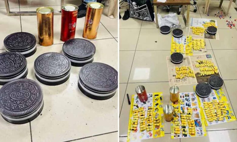 विदेश से तस्करी करने वाले तरह-तरह की जुगाड़ से तस्करी करते हैं और पकड़े भी जाते हैं। ऐसा ही एक मामला सामने आया है जिसमें मुंबई एयरपोर्ट पर एक भारतीय महिला को गिरफ्तार किया गया है। अधिकारियों को उसके पास से ओरियो और चॉकलेट के डिब्बे मिले हैं, जिसके अंदर 62.6 करोड़ रुपए मूल्य की कोकीन जब्त की गई है। मीडिया रिपोर्ट में डीआरआई मुंबई के अधिकारियों ने बताया कि एयरपोर्ट पर एक महिला को 300 कैप्सूल में भरे 6 किलोग्राम से अधिक कोकीन के साथ गिरफ्तार किया है। इसकी अनुमानित कीमत 62.6 करोड़ रुपए है। उन्होंने बताया कि कैप्सूल ओरियो बिस्कुट के छह डिब्बों और चॉकलेट के तीन डिब्बों में पैक थे। महिला दोहा से मुंबई पहुंची थी। डीआरआई अधिकारियों को गुप्त सूचना मिली थी कि मुंबई आने वाली फ्लाइट से कोकिन की तस्करी की जा रही है।